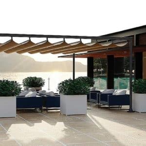 Mái xếp là giải pháp che mưa che nắng đang rất được ưa chuộng tại các quán cafe, quán ăn, sân vườn,… ngoài trời trong những năm gần đây. Điểm nổi bật của dòng mái che mưa che nắng này đó là thiết kế mái dạng lượn sóng, nhiều nếp gấp theo từng tầng khác nhau giúp việc đóng mở mái bạt dễ dàng hơn. Đặc biệt giúp giảm thiểu tiếng ồn khi trời mưa.